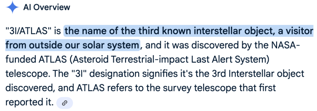 So now, how does all this connect to 3I Atlas? Well, it’s an obvious target for fear porn. Just like the war that ends all life on earth, so might this, or some other visitor from space do the same.