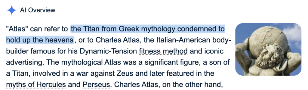 And then there’s that word “Atlas,” referring to one of the Greek Titans “condemned to hold up the heavens.”