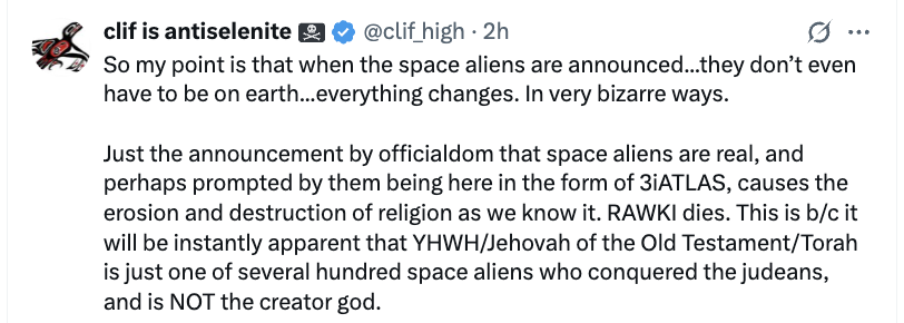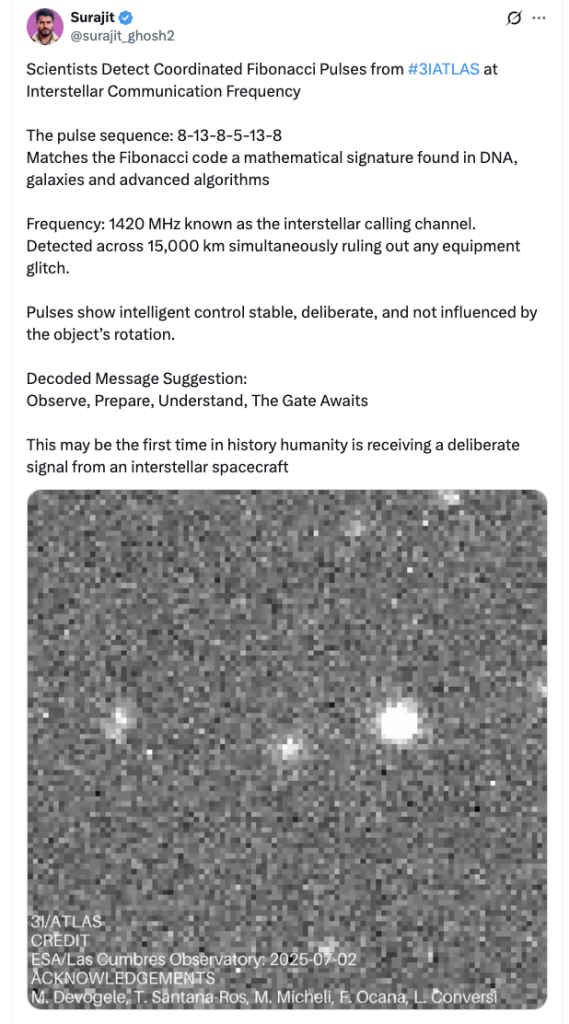 So while I spent quite a while yesterday combing through twitter posts that relate to 3I Atlas, collecting about 20 of them to repost here, I’ve decided not to delve into the details of what I came across there.