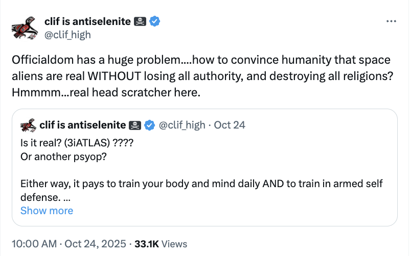 I’m wondering: should I consider 3iAtlas merely a psy-op, meant to distract us for some reason? And/or: is 3iAtlas just the latest, and obviously best, example of the UFO/UAP phenomenon, which has fascinated me for over 20 years, driving me to attend numerous UFO conferences?
