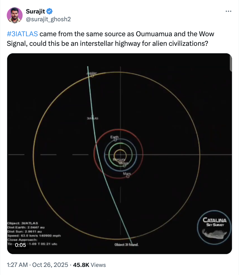 For me, what’s really interesting is that this larger conversation about our so very mysterious universe, if we take this talk about 3IAtlas even relatively seriously, instantly reduces our tiny daily concerns to the blink of a cosmic eye.