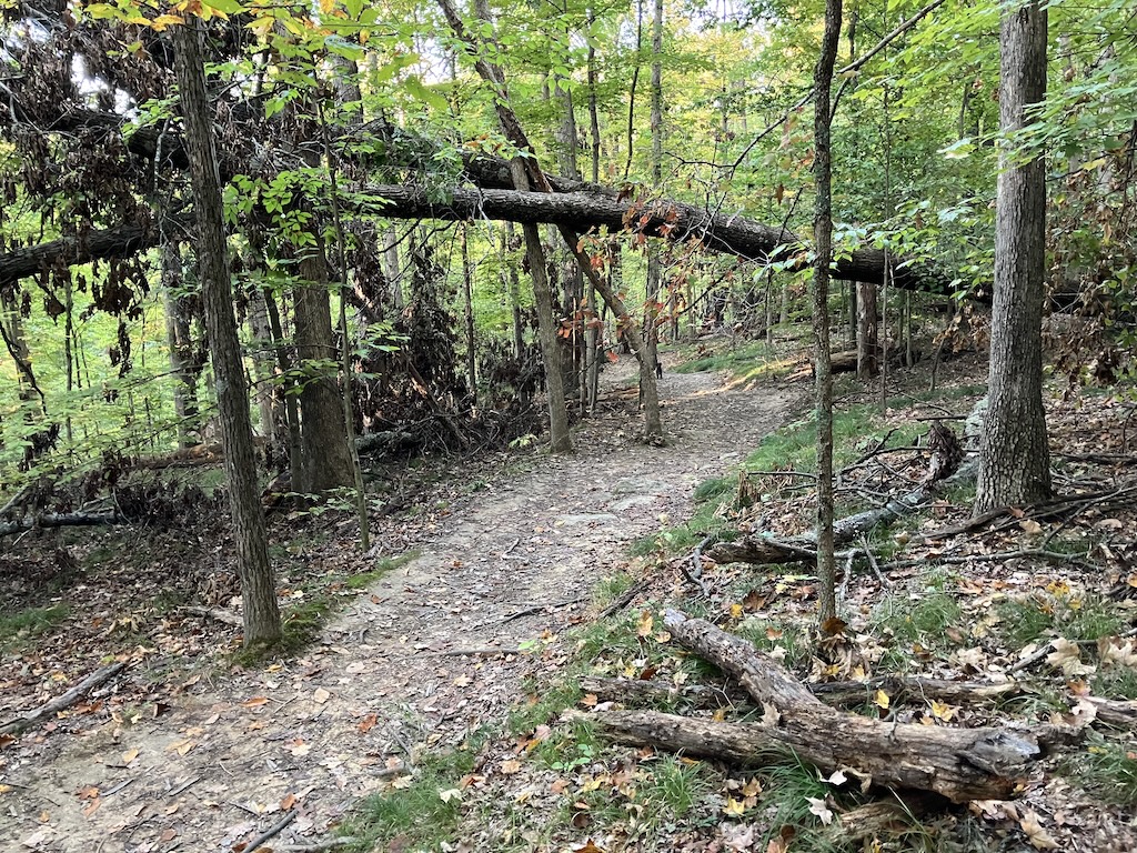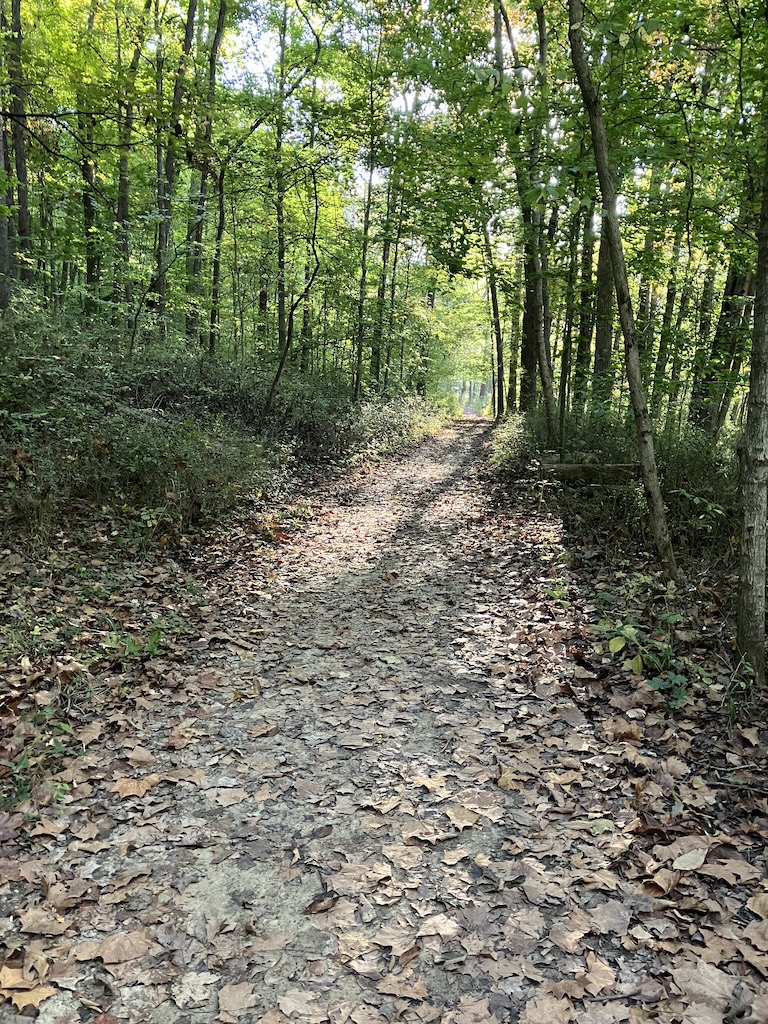 This is a trail that I take often; not only is it in an In-Diana woodland which I treasure, but it also has a 200 feet elevation, which my nearly 83-year-old cardiovascular system requires (Today I trekked the elevation twice: on way out, on way back.)