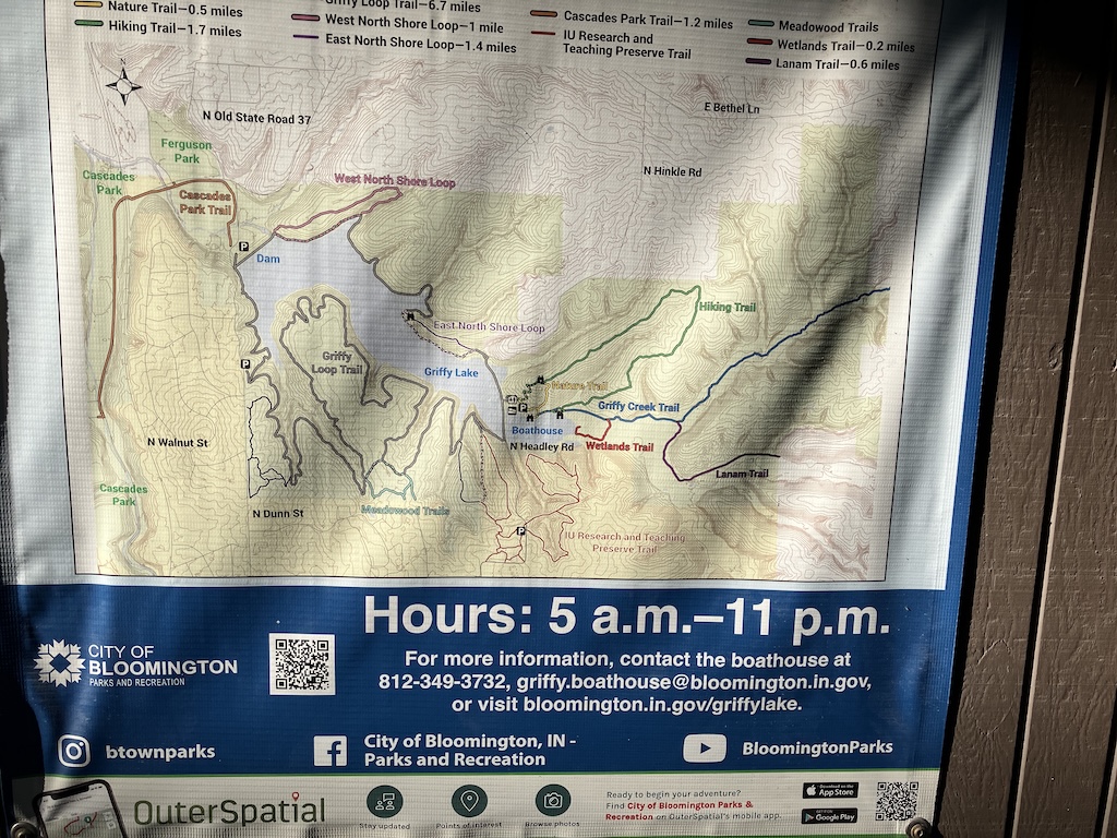 And even closer to home, i.e., in my own body, I decided to do my daily morning walk on a trail this morning, specifically a well used trail at Griffy Lake, about ten minutes north by car from where I live.