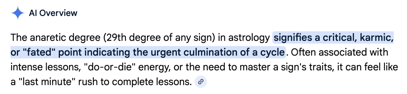 Then, after wrestling with my fears, I made an important financial and philosophical, purpose-driven decision, followed by setting up a chart for that moment. Guess what was on the Ascendant of that event chart? 23° Cancer, exactly where my natal Jupiter sits in my own chart!
