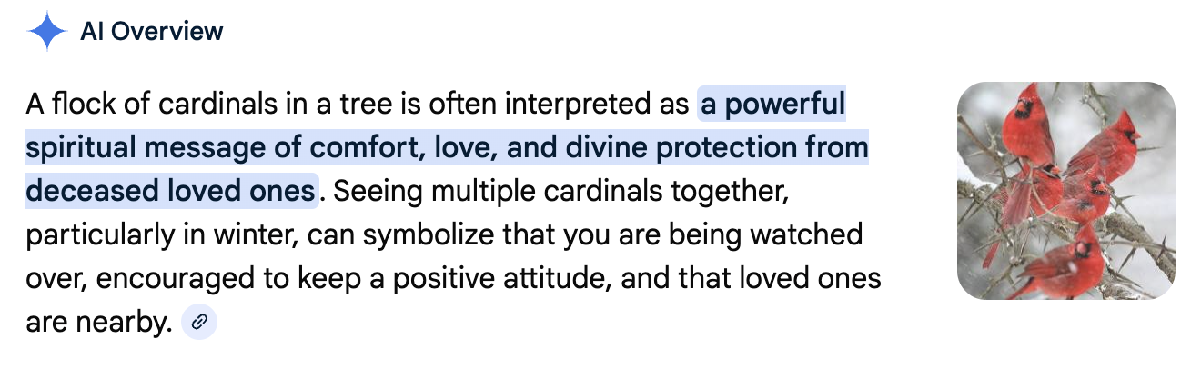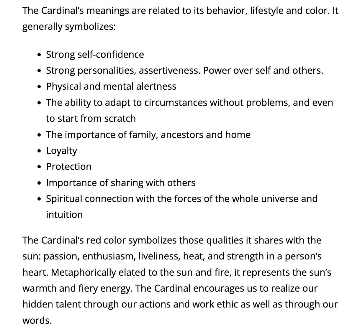Hmmm . . . and the spiritual significance of the cardinal itself?