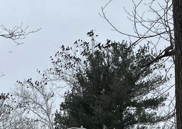 I was reminded of a post I put up last week, of flocks of crows settling onto the leafless branches of nearby trees.