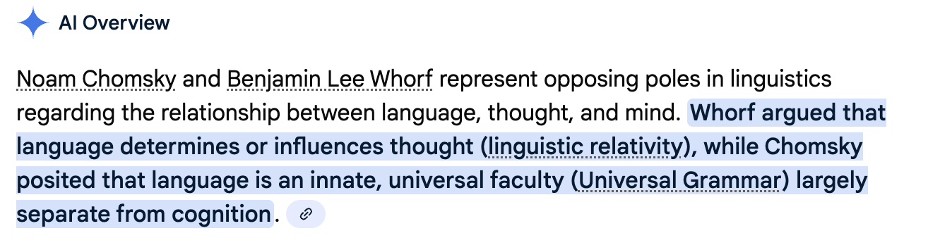 Okay, so what’s the difference between Chomsky and Whorf?