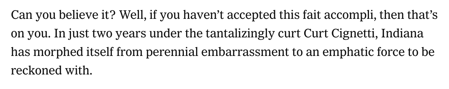 Indiana’s historic victory was covered in all the mainstream media, even the NYT: