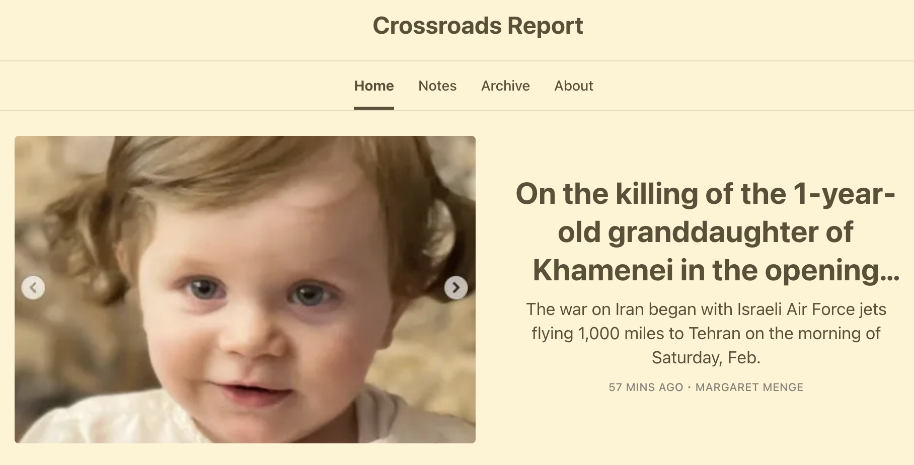 Inside the horrors of our war on Iran, which yes, some say is utterly necessary (and well it may be, in the 80,000 foot view), I came across this post this morning, by friend and neighbor Margaret Menge, who reminded me that death by murder has been normalized.