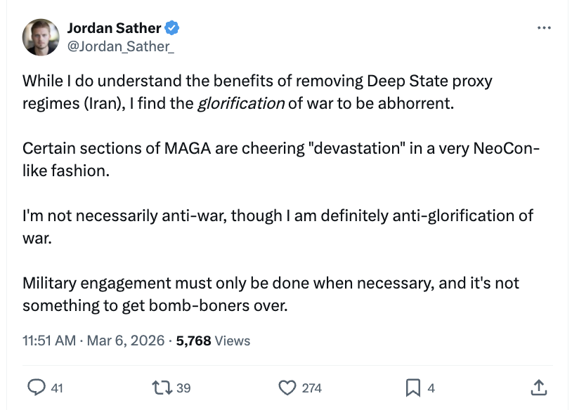 Here’s the post he did on the actual day “Epic Fury” was launched.