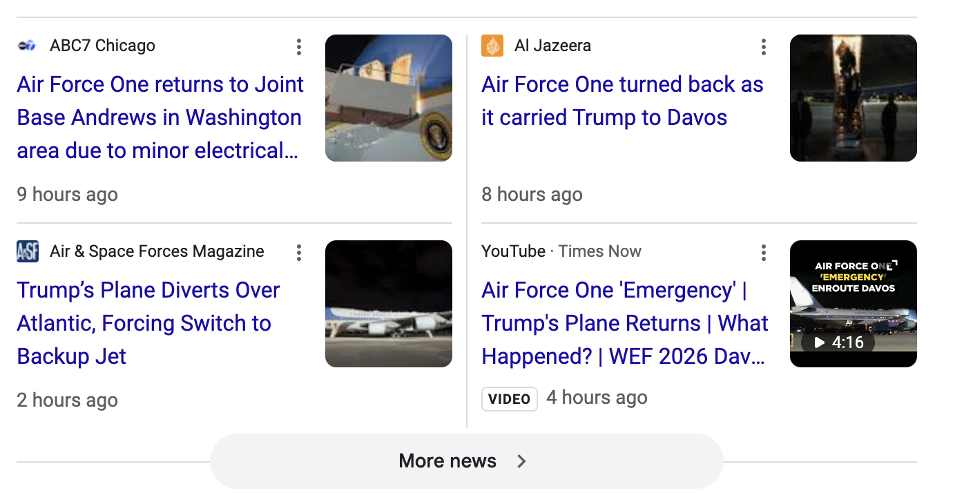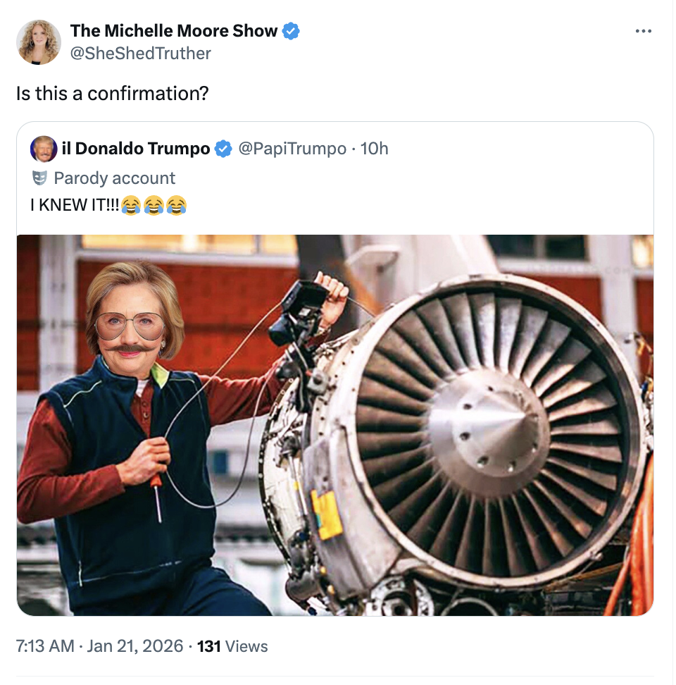 On his way to Davos to deliver god only knows what kind of searing lecture to the assembled globalists, likely on his plans for Greenland, Trump’s plane suddenly turns around and returns, to get on another plane, and finally take off again at 11 PM last night.