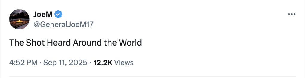 Looking back over my last post, on 9/11, I’ve since been down the rabbit hole with the Charley Kirk murder as well as with the woman on the train. I learned that the blood supposedly squishing from his neck might have been a “blood squish,” used as special effects, usually in films. So there goes that bit of “certainty.”