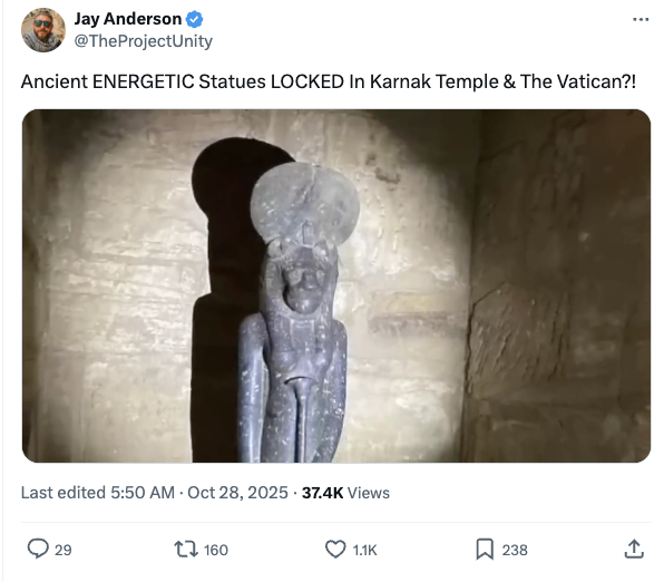 Yes, this X post on Sekhmet reminded me of that long ago essay, which (except for the quote above!) detailed my slowly dying/death/rebirth experience during a 1992 trip to Egypt in this life. It is an experience that rings a loud bell in memory whenever I think of it, because it was that trip that shifted me from FEAR into LOVE. Not automatically, and not all at once. But, following work with Orphan Annie, it was the ignition point.