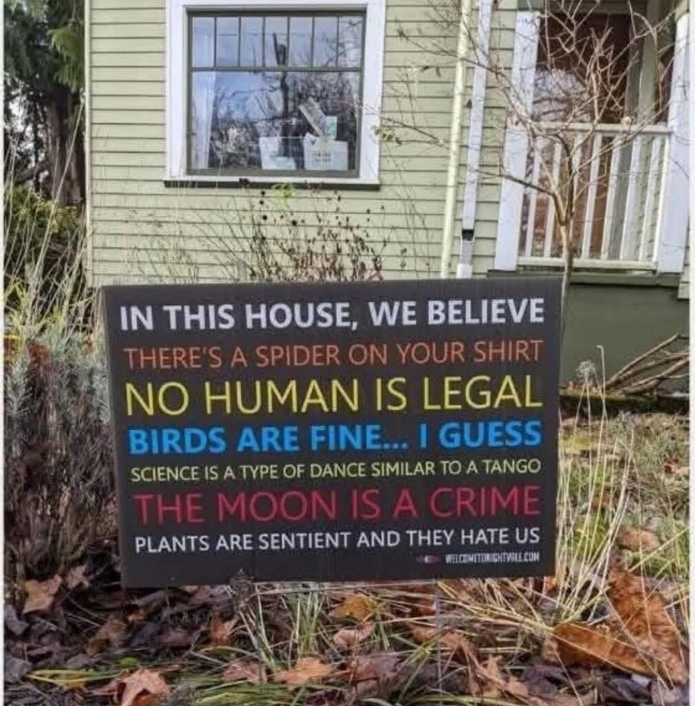 So that now, these kinds of signs on lawns actually do exist. (Not that I’ve seen one in leftist Bloomington Indiana).