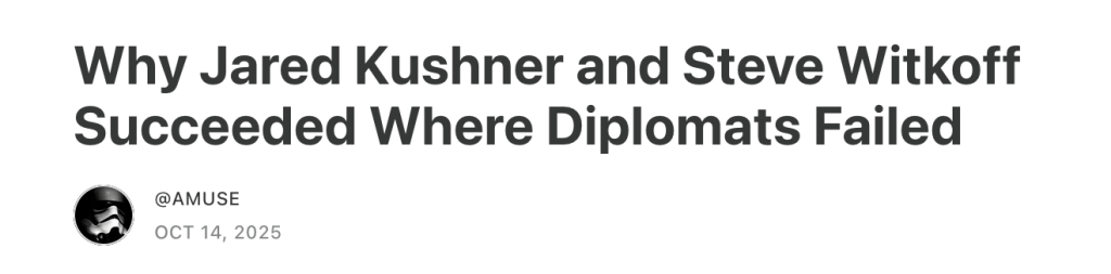 Here’s an interesting take on how Jared Kushner and Steve Witkoff got the deal done.