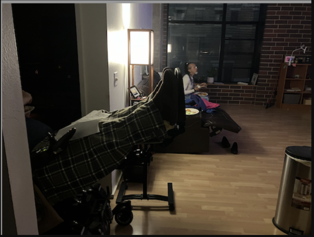 My paralyzed, nerve-damaged, nearly-60-year-old son Colin Cudmore held his second holiday event — the first was on Christmas Day— yesterday, New Year’s Day, starting at 3 PM, in his new apartment (since August, after two years in a horrible nursing home); unfortunately, his nerve pain, always 24×7, and unpredictable, was elevated the entire time. However, we soldiered on. Here’s the relevant post, which I published this morning on caringbridge.org.