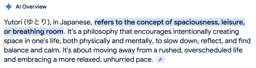 Yutori: etymology: from the Japanese word yutoru, “to loosen, to relax.”
