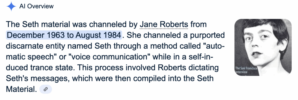 I think back to the Seth Speaks material, channeled by Jane Roberts from 1963 through 1984, and essentially, launching the New Age movement with its motto, You Create Your Own Reality.