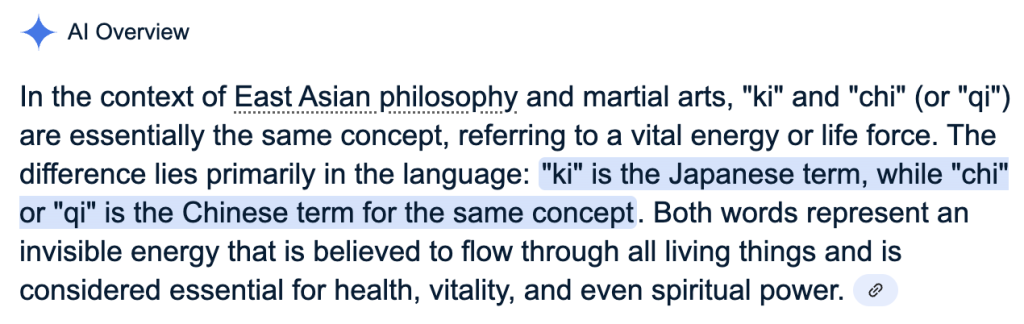 Looking at the “ki” part of the word, I’m reminded of tai chi (tai ki, or tai qi), as described here: