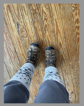 My legs: final covering: wool leg warmers I bought in Siberia, yes, in SIBERIA, a few years ago.