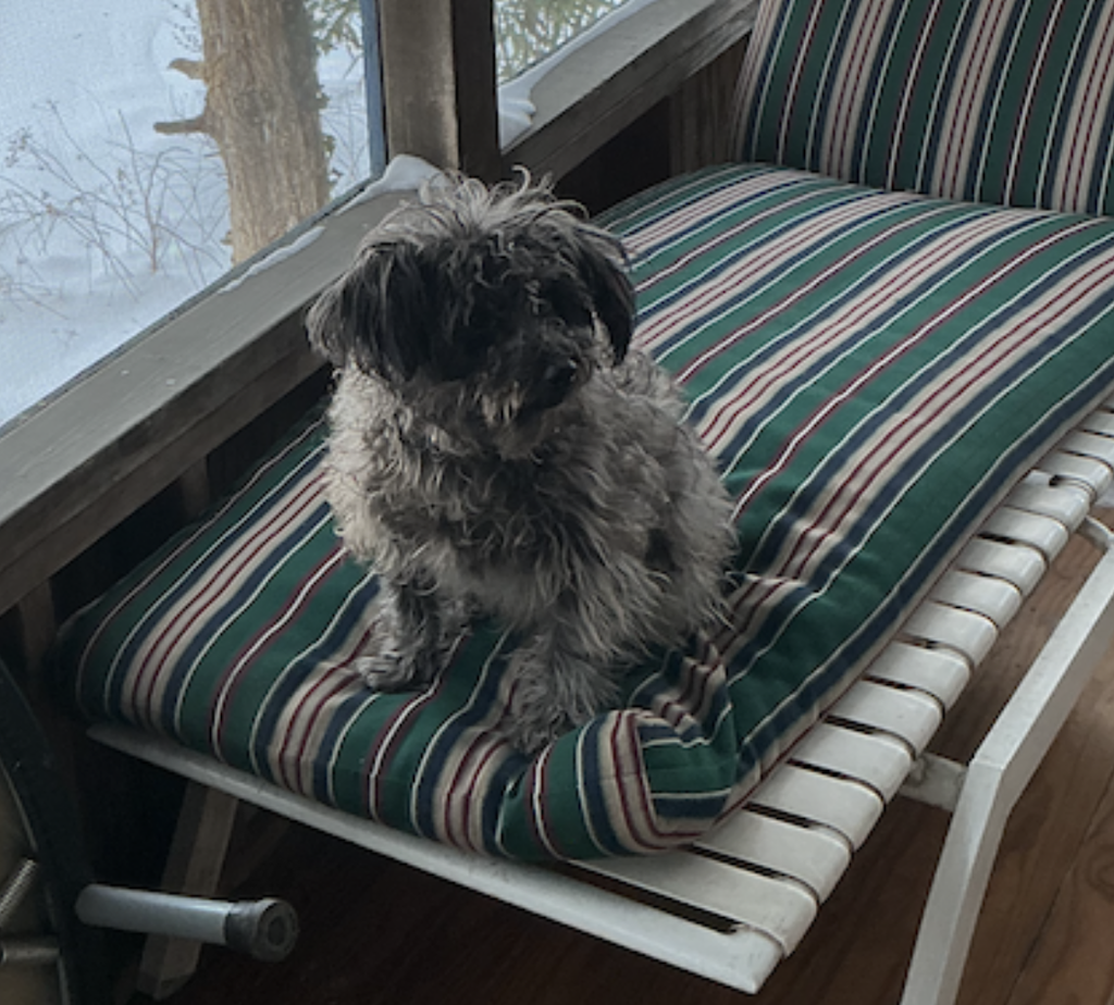 Oh, and here’s Scampi, wondering what all the fuss is about. As on the last three frozen mornings, he lasted just a few feet out into the street before wanting to go back inside.