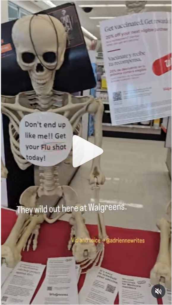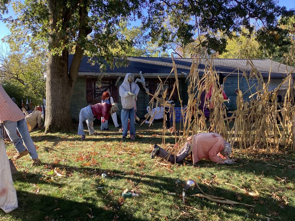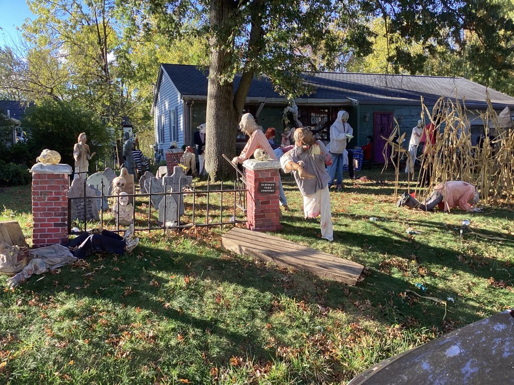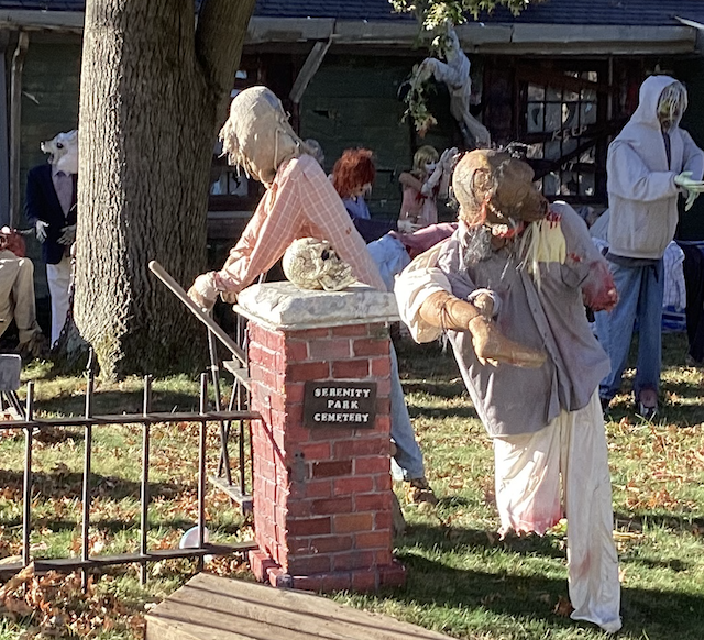 Zombieland is no big deal. Not these days. Maybe this display is a simulation of what we are going through in reality, just beneath the thin, fulminating surface, with pedophilia, child and human trafficking, adrenochrome, DUMBs, and so on, all now breaking through. And then of course, there’s the now five year old covid con, making hay while the Halloween sun shines!