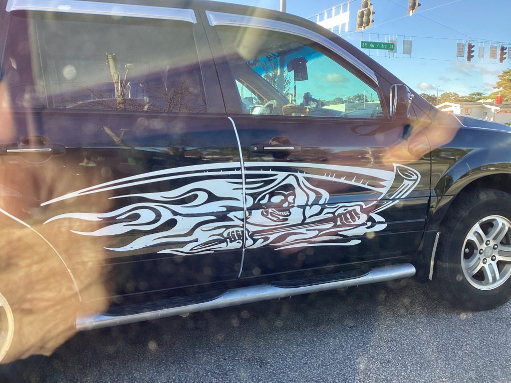 Oh geez! On my way home from taking photos, this appears next to me at a stop light . . .